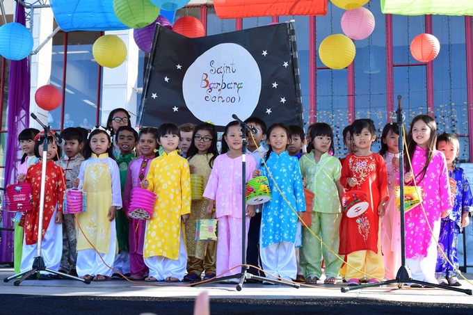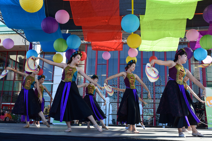 Những thiếu nữ người Việt mang không khí Trung thu của quê hương về trên đất Mỹ với các tiết mục múa dân gian. Ảnh: vnexpress.net |