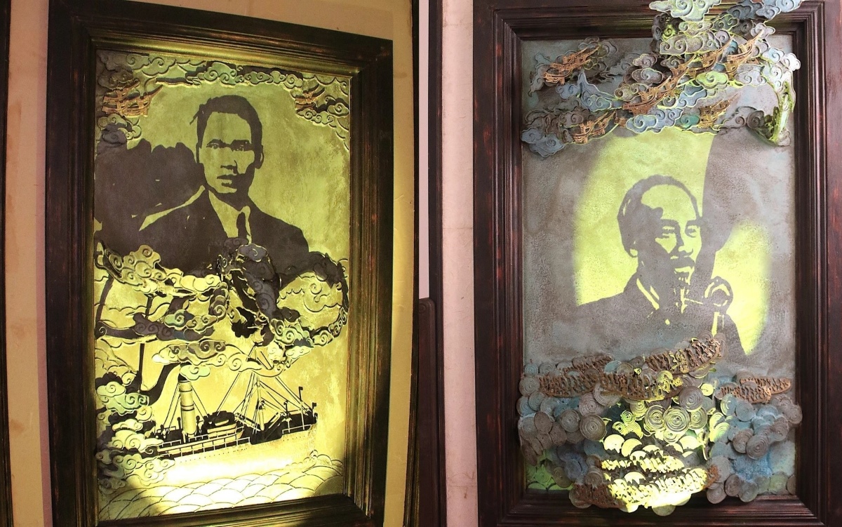 Tác phẩm về Chủ tịch Hồ Chí Minh trưng bày tại Triển lãm. Ảnh: Khánh Vân/TTXVN |