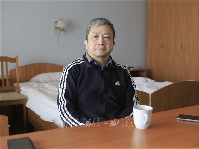 Ông Hoàng Minh Hồng (sinh năm 1962) trong nhóm 10 người vừa được sơ tán từ thị trấn Kupyansk sang Nga. Ảnh: Trần Hiếu/TTXVN tại Nga |
