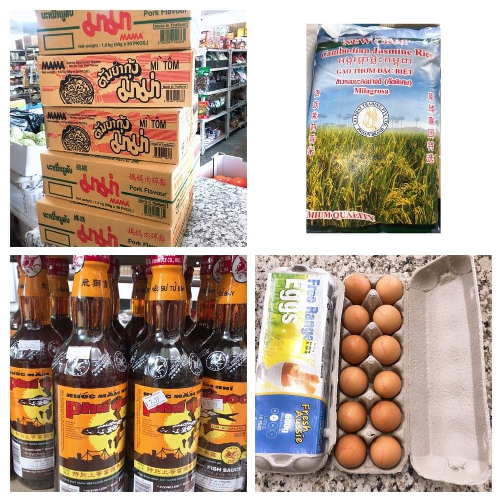 Những thực phẩm được hỗ trợ cho du học sinh tại một số cửa hàng thực phẩm Việt trong mùa dịch. |