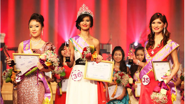 | Hoa Hậu Edyta Rose Krejner (giữa), á hậu 1 Ngô Thu Thủy (trái) và á hậu 2 Wioletta Mai Krejner (phải) trong cuộc thi Người đẹp thanh lịch VN tại Ba Lan. (Ảnh: Lê Xuân Lâm) |