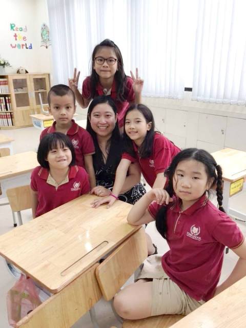 Chị Đinh Thu Hồng và các học sinh tiểu học VinSchool |