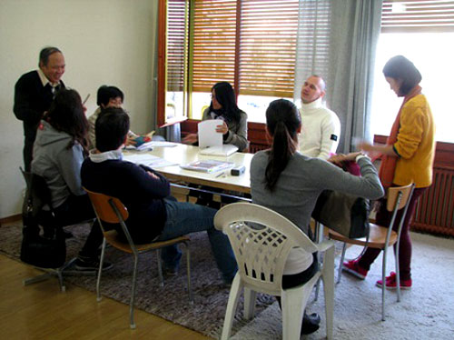 Vào một buổi sáng thời tiết lạnh giá, chúng tôi đã có dịp tham dự một buổi học tiếng Việt của trường. Mặc cho tuyết rơi bên ngoài, không khí trong lớp học vẫn vô cùng ấm áp. Đây là lớp học trình độ 1 dành cho người lớn. Trong lớp có 6 học sinh, họ đang chuẩn bị cho kỳ thi kết thúc khóa học với bài thi viết gồm dịch từ tiếng Việt sang tiếng Pháp, các bài tập ngữ pháp, ghép các từ đã cho thành câu có nghĩa, đặt câu với các từ gợi ý... Trần Hà Linh, một sinh viên đang làm luận văn thạc sĩ ở trường đại học Genève và là giảng viên của lớp, cho biết học viên của trường Âu Lạc Việt rất chịu khó và thích thú học tiếng Việt, cho dù với họ là một ngôn ngữ khó.