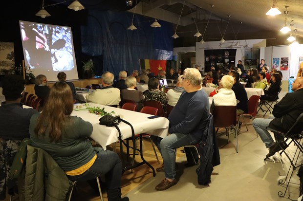 Bộ phim "Chất độc màu da cam - Trái bom nổ chậm" được trình chiếu trong đêm hội 15/10 tại Brussels (Bỉ). Ảnh: Hương Giang/TTXVN |