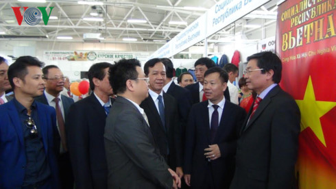 Gian hàng Việt Nam tham gia Hội chợ với các mặt hàng truyền thống như chè, cà phê, may mặc, thời trang được khách hàng Nga đón nhận.