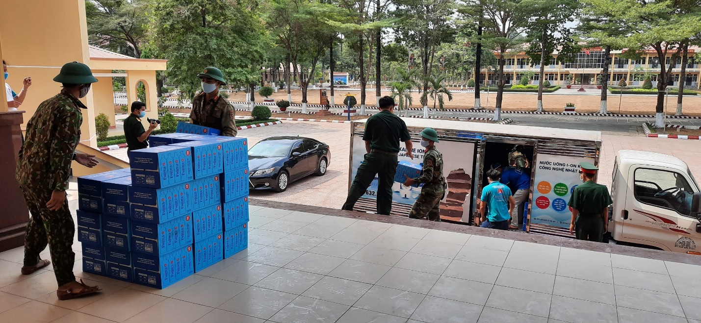 Nhân dịp này, VKEIA tiến hành ủng hộ 1500 khẩu trang y tế dành cho y bác sĩ Quân y, một thùng Gel rửa tay diệt khuẩn và một trăm thùng nước bù khoáng FUJIWA. Những vật dụng thiết yếu này sẽ giúp các y bác sĩ Quân y thêm vững tâm chiến đấu và cùng với cả nước chiến thắng dịch bệnh.