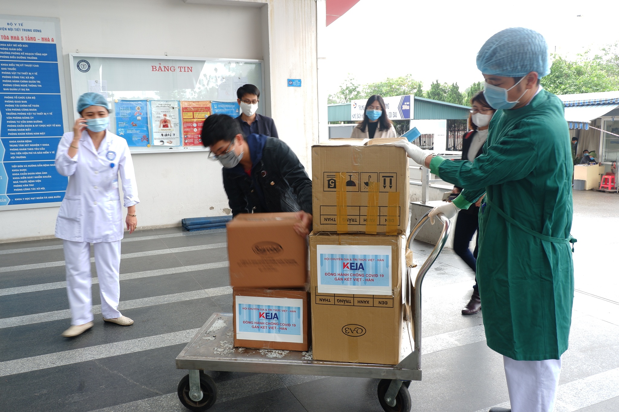 Khi thế giới bị ảnh hưởng của đại dịch Covid-19, chỉ trong thời gian ngắn Hội chuyên gia, trí thức Việt Nam – Hàn Quốc (VKEIA) nhanh chóng tìm hiểu thực tế rồi vận động mạnh thường quân từ các doanh nghiệp trong nước cũng như Hàn Quốc ủng hộ các vật phẩm y tế cần thiết cho người dân, y, bác sĩ, lực lượng vũ trang ở tuyến đầu chống dịch trong nước và kiều bào ở Hàn Quốc.