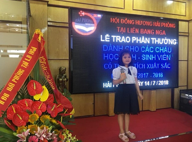Phát biểu tại buổi lễ, ông Nguyễn Mạnh Cương, Chủ tịch Hội liên lạc Việt kiều Hải Phòng, biểu dương và chúc mừng thành tích học tập rèn luyện của các cháu trong năm học vừa qua. 39 học sinh có thành tích học tập tốt nhất đã được trao thưởng trong dịp này. Đây là con em của các gia đình hội viên Hội đồng hương Hải Phòng tại Liên bang Nga.