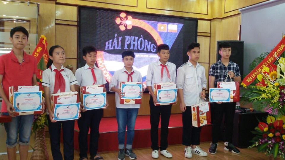 Các học sinh giỏi trong năm học 2017-2018 của các gia đình hội viên Hội đồng hương Hải Phòng tại Liên bang Nga nhận thư khen và các phần quà.