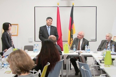 | Đại sứ Đoàn Xuân Hưng chúc mừng những thành tựu của Hội Đức-Việt. Ảnh: baotintuc.vn |