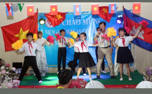 Các đại biểu, các em học sinh trường tiểu học Hữu nghị Khmer-Việt Nam hòa vang ca khúc ca ngợi Đảng, đất nước và chiến thắng 30/4 lịch sử |