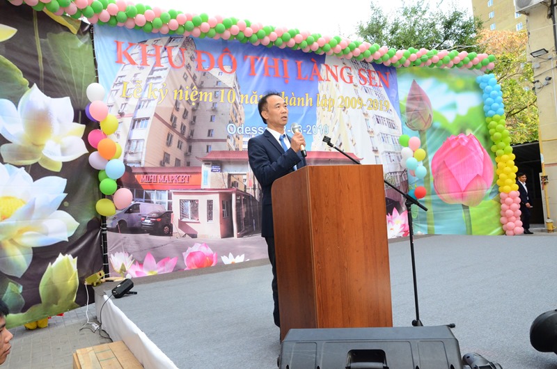 Để chung vui cùng bà con, Đại sứ Nguyễn Anh Tuấn đã chúc mừng Hội làng và dành tặng lẵng hoa tươi thắm. Đại sứ khẳng định Làng Sen tại Odessa là biểu tượng của sự hợp tác VN – Ucraina và hi vọng, bà con sẽ luôn đoàn kết, luôn đóng góp tích cực cho đất nước Ucraina, cho thành phố Odessa và hướng về cội nguồn quê hương đất nước Việt Nam. Đại sứ cũng cho biết thêm, sau khi có tỉnh trưởng mới tại Odessa, Đại sứ sẽ về làm việc với chính quyền địa phương để hỗ trợ, bảo vệ quyền lợi cho bà con.