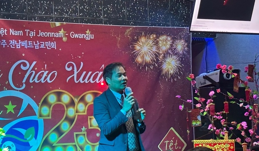 Trong buổi Gala Chào xuân 2023, Chủ tịch Hội người Việt tại Jeonnam-Gwangju ông Nguyễn Viết Phong gửi lời chúc Tết tới các hội viên cũng như toàn thể người Việt đang sinh sống tại khu vực Jeonnam-Gwangju một năm mới nhiều sức khoẻ, an khang, thịnh vượng.