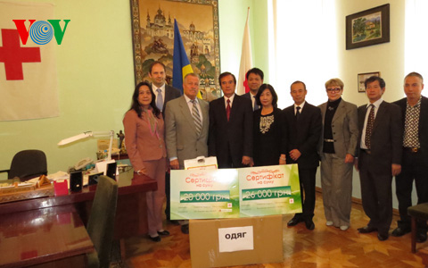 (VOV5) - Lễ trao quà cứu trợ diễn ra chiều ngày 19/9, tại trụ sở Hội Chữ thập đỏ Ukraine nhằm chia sẻ những khó khăn với người dân Ukraine và bà con gốc Việt đang gặp khó khăn tại các tỉnh Đông Nam Ukraine.