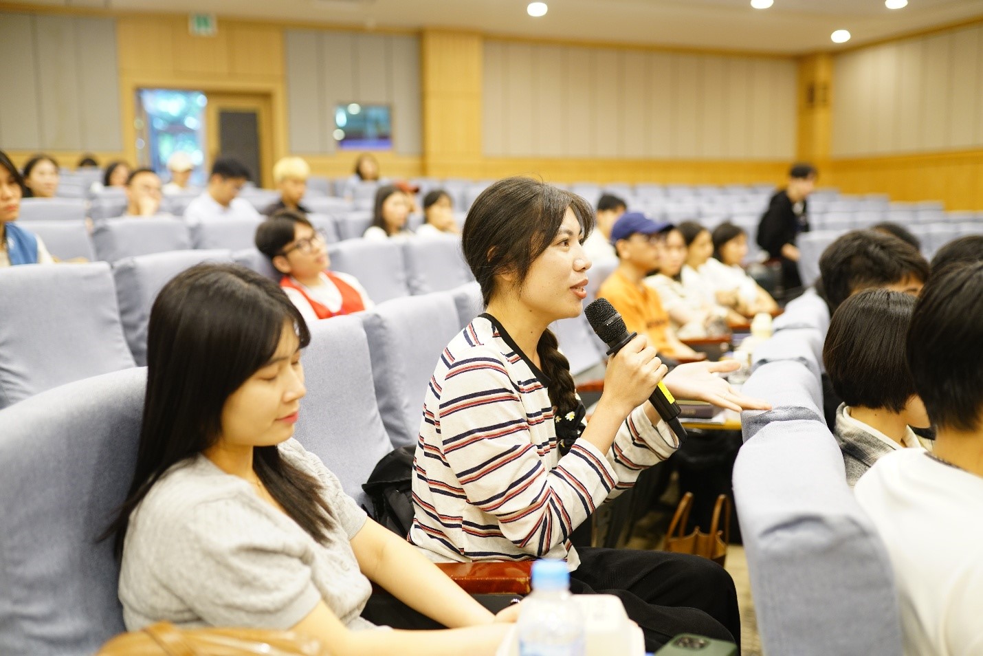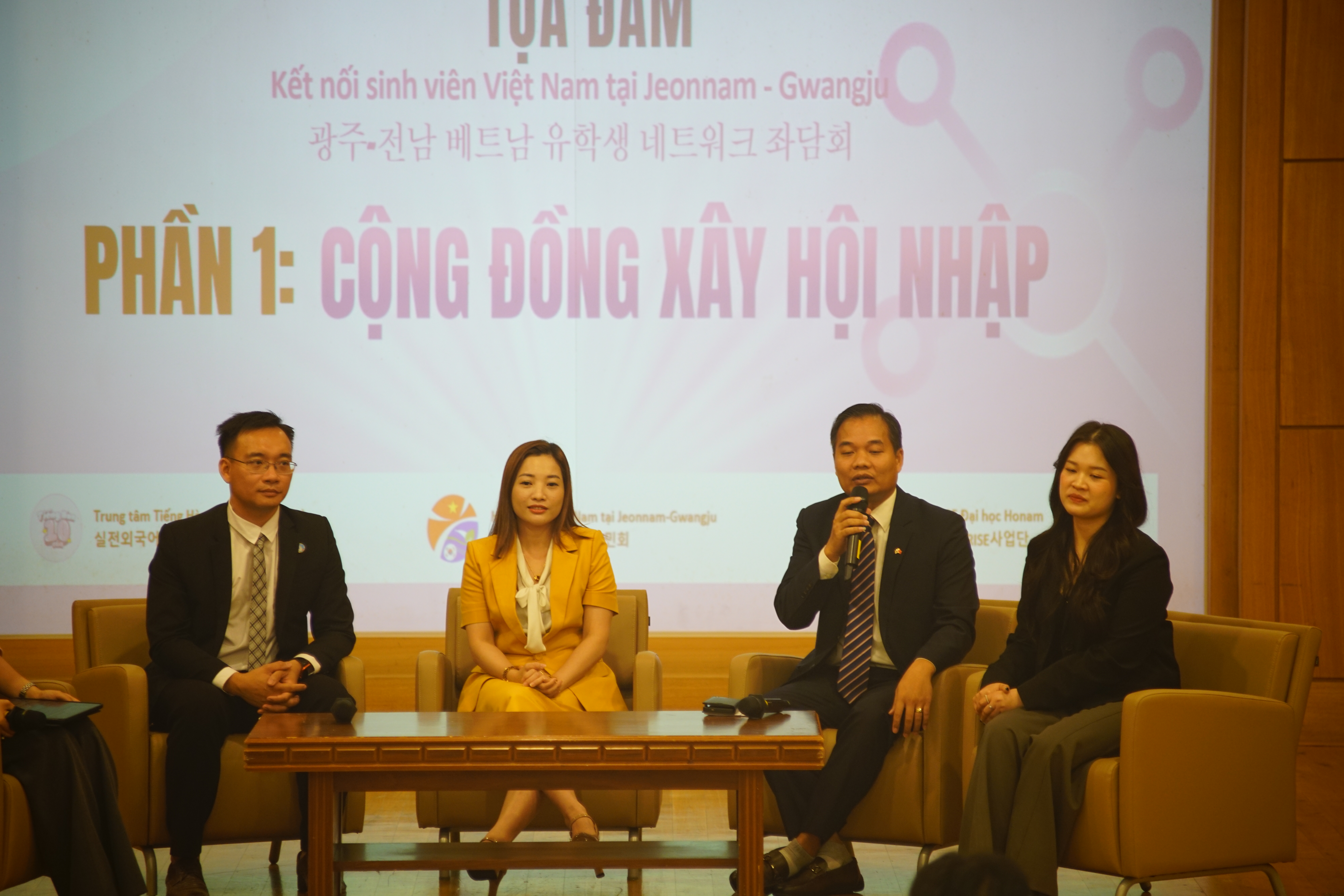 Chiều 20/09/2025, hơn 100 sinh viên, giảng viên và khách mời tham dự buổi tọa đàm với chủ đề "Cộng đồng xây hội nhập – Tiếng Hàn dựng tương lai" tại hội trường Sangha, Đại học Honam, Gwangju, Hàn Quốc.