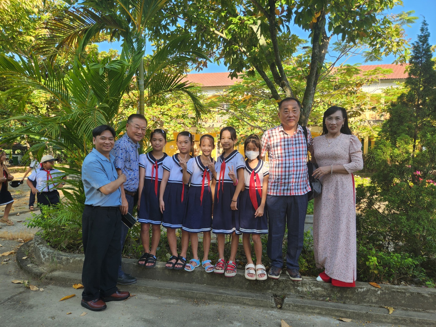 Ông Trương Nguyễn Tâm Nguyên cùng các đại biểu và các em học sinh. |