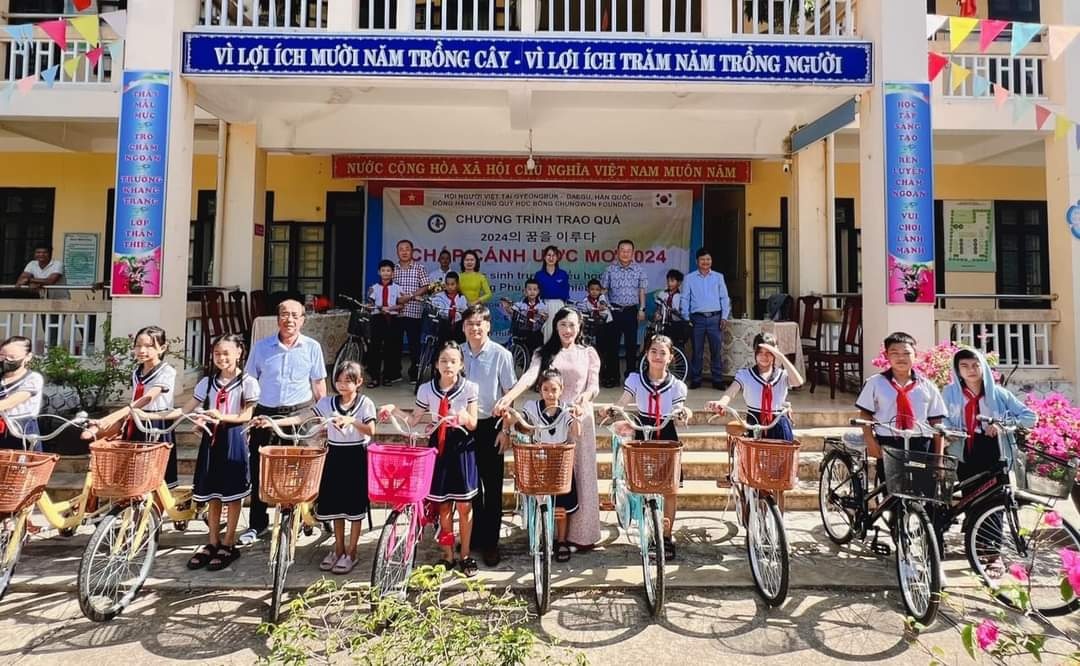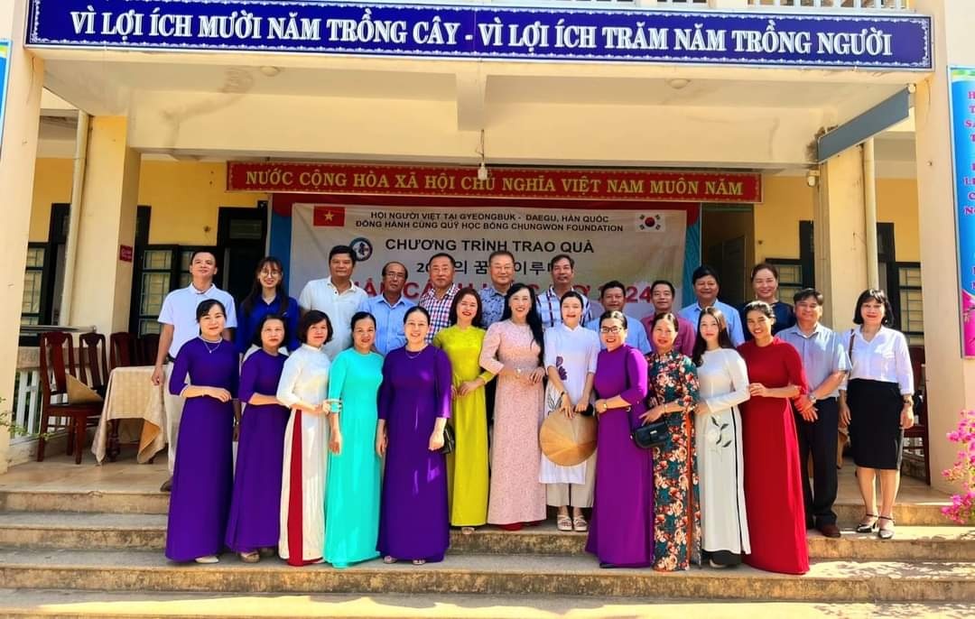 Vừa qua, Hội người Việt Nam tại khu vực Gyeongbuk-Daegu (Hàn Quốc) phối hợp cùng quỹ học bổng Chungwon Foundation triển khai chương trình từ thiện "Chắp cánh ước mơ hè 2024" tại Việt Nam. Chương trình đã mang đến niềm vui và sự hỗ trợ thiết thực cho nhiều học sinh có hoàn cảnh khó khăn tại Thừa Thiên Huế và Cần Thơ.