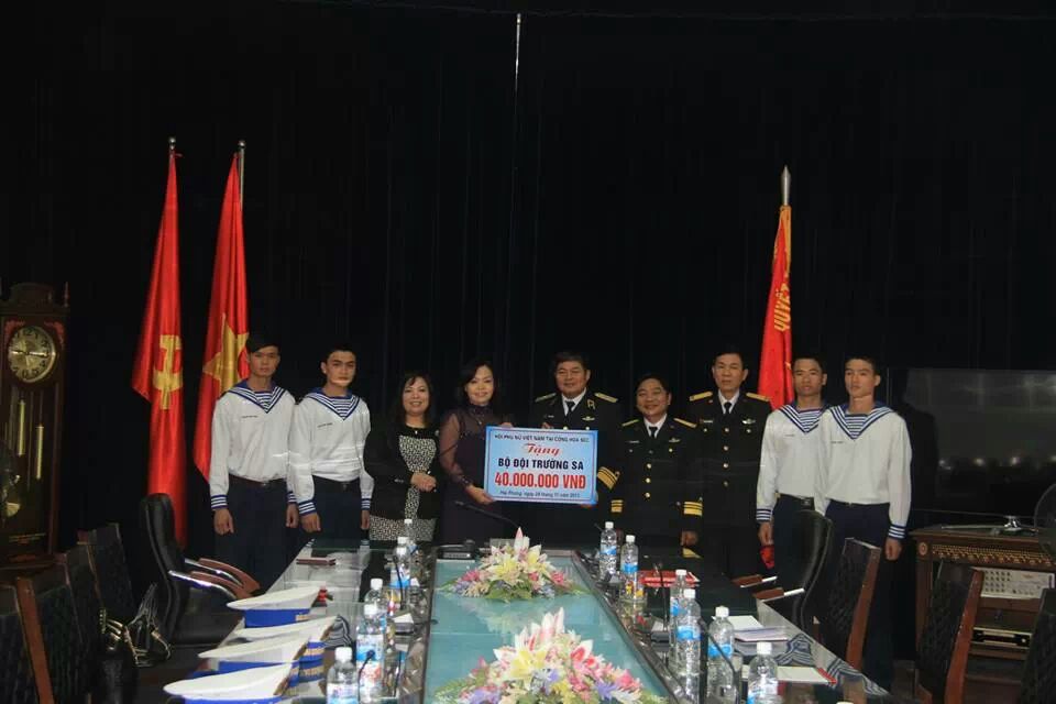 (VOV5) - Tiếp tục các hoạt động hướng về nguồn cội, sáng 24/11, tại trụ sở Bộ tư lệnh Quân chủng Hải Quân, Hải Phòng, bà Nguyễn Thị Chung, Phó chủ tịch Hội phụ nữ người Việt Nam tại Cộng hoà Séc và bà Đỗ Thị Bằng đại diện cho Hội phụ nữ Việt Nam tại Cộng hoà Séc đã trao tặng 40 triệu đồng cho Quỹ Vì Trường Sa.