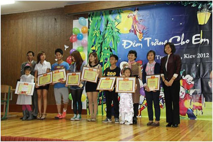 Đến dự ngày Hội Trung thu có sự hiện diện của Tham tán Bùi Thanh Vân cùng phu quân, ông Nguyễn Văn Tuyên – Tham tán- Phó Bí thư Đảng ủy ngoài nước, ông Nguyễn Quang Vinh, Bí thư Chi bộ khối lưu học sinh cùng đại diện các đoàn thể Hội Người Việt Nam, Hội Cựu chiến binh Kiev, Đoàn thanh niên, Hội Nghệ Tĩnh, Hội Thanh Hóa và hơn 200 cháu cùng phụ huynh đã về dự đông đủ.