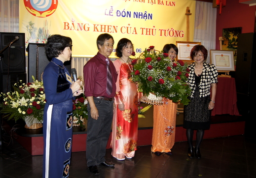 Chị Nguyễn Việt Triều, chủ tịch Hội phát biểu bày tỏ niềm vinh dự của chị em khi được nhận phần thưởng cao quí này. Chị nhờ Đại sứ chuyển lời cám ơn của chị em đến thủ tướng vì dã quan tâm, động viên, chia sẻ và đánh giá cao những hoạt động của Hội trong thời gian qua. Chị em phụ nữ sẽ hoạt động tích cực, hiệu quả hơn trong thời gian tới để xứng đáng với vinh dự này.