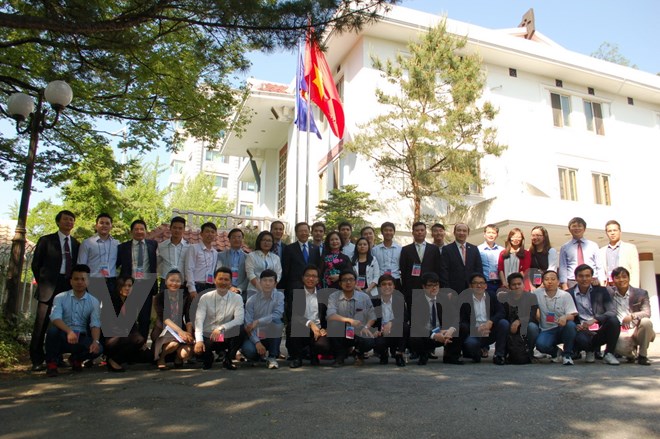 | Ban Chấp hành VSAK khóa 5 chụp ảnh lưu niệm cùng Đại sứ Việt Nam tại Hàn Quốc Phạm Hữu Chí và Phu nhân. (Nguồn: Vietnam+) |