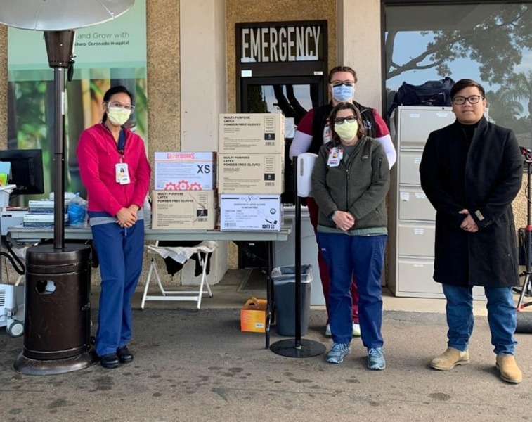 Thời gian này, rất nhiều bệnh viện ở Mỹ nói chung và trong bang California nói riêng đều rơi vào tình trạng thiếu hụt dụng cụ bảo hộ y tế. Các y bác sĩ tại nhiều bệnh viện phải tái sử dụng khẩu trang nhiều lần để duy trì số lượng dụng cụ bảo hộ trong thời gian lâu nhất.