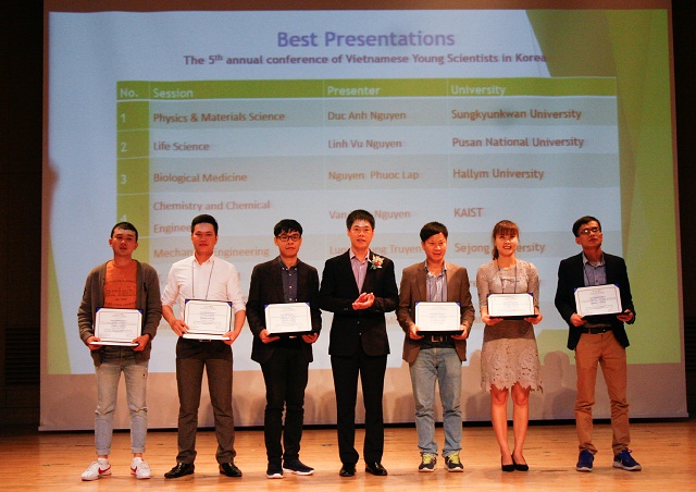 Ban tổ chức cũng đã chọn ra được các tác giả thuyết trình xuất sắc nhất trong các lĩnh vực như Khoa học vật liệu và vật lý (tác giả Nguyễn Đức Anh – Đại học Sungkyungkwan), Khoa học đời sống (Nguyễn Linh Vũ – Đại học Quốc gia Pusan), Y sinh (Nguyễn Phước Lập – Đại học Hallym), Hóa học và kỹ thuật hóa học (Nguyễn Văn Hiệp – KAIST), Kỹ thuật cơ khí (Lương Hùng Truyện – Đại học Sejong), Công nghệ thông tin - điện tử viễn thông (Vũ Hạnh – Đại học Korea), Kỹ thuật xây dựng và môi trường (Nguyễn Lê Minh Trí - Đại học Ulsan).