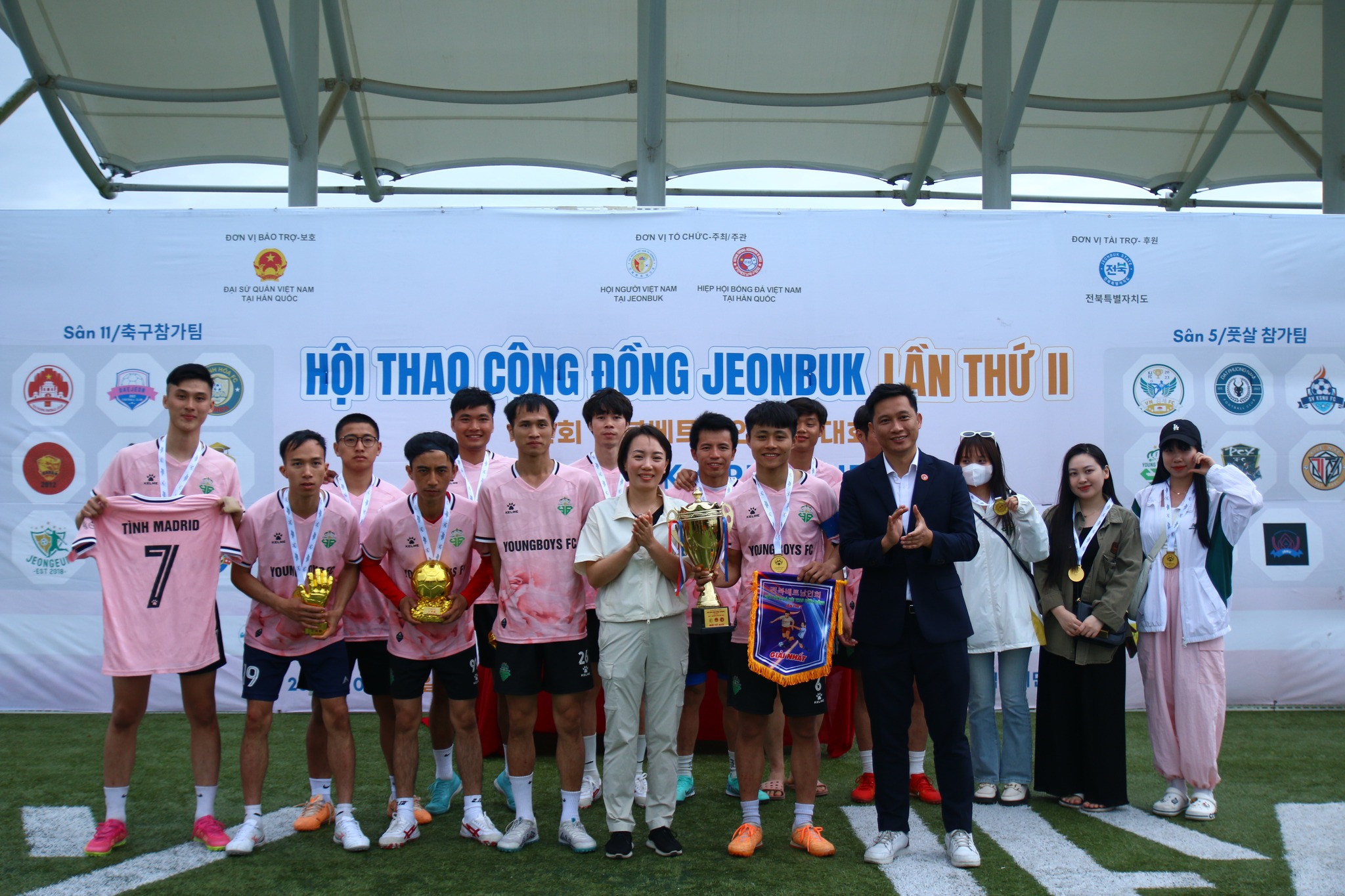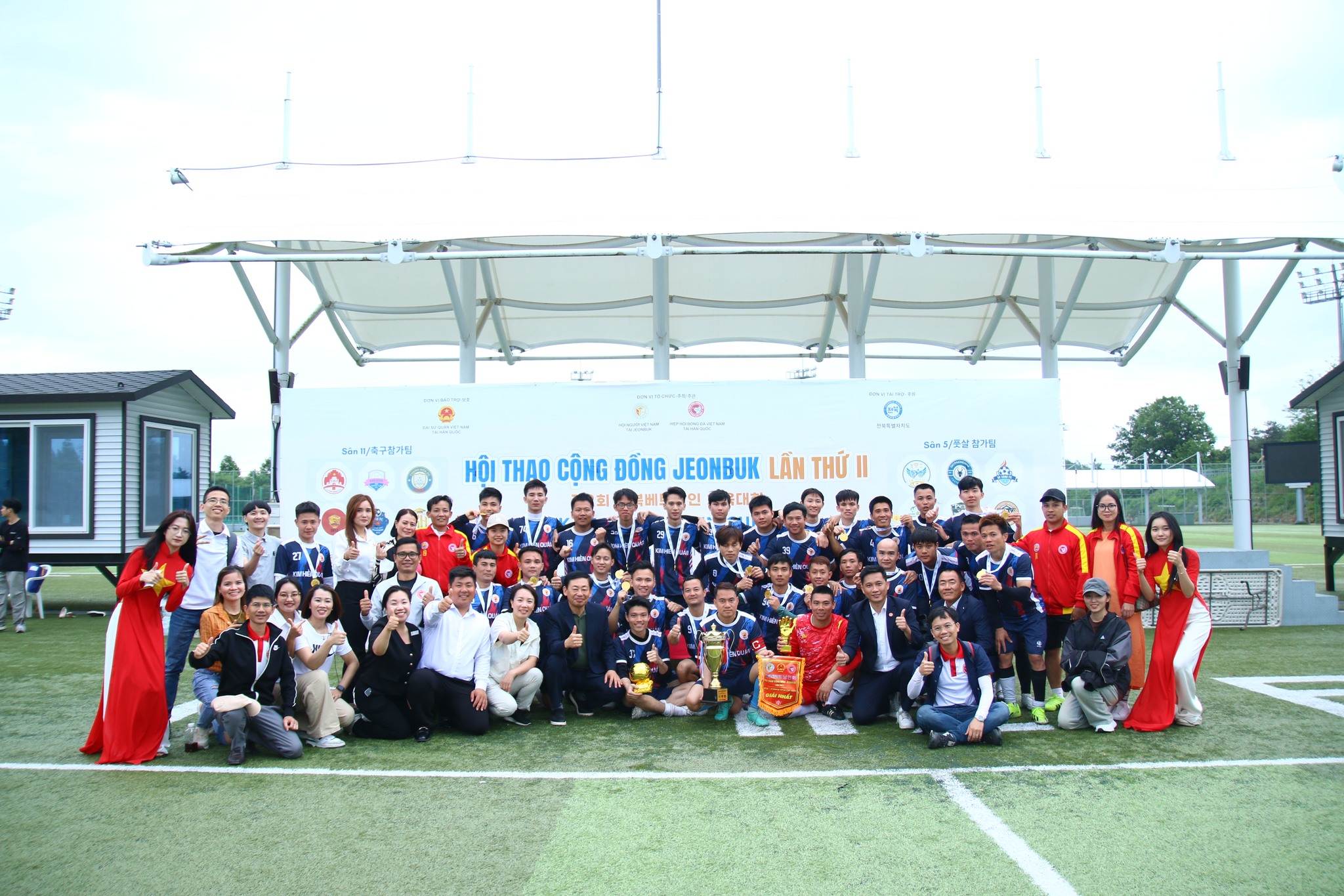 Ban tổ chức chụp ảnh cùng các khách mời và nhà tài trợ tại Hội thao Cộng đồng Jeonbuk lần thứ II. |
