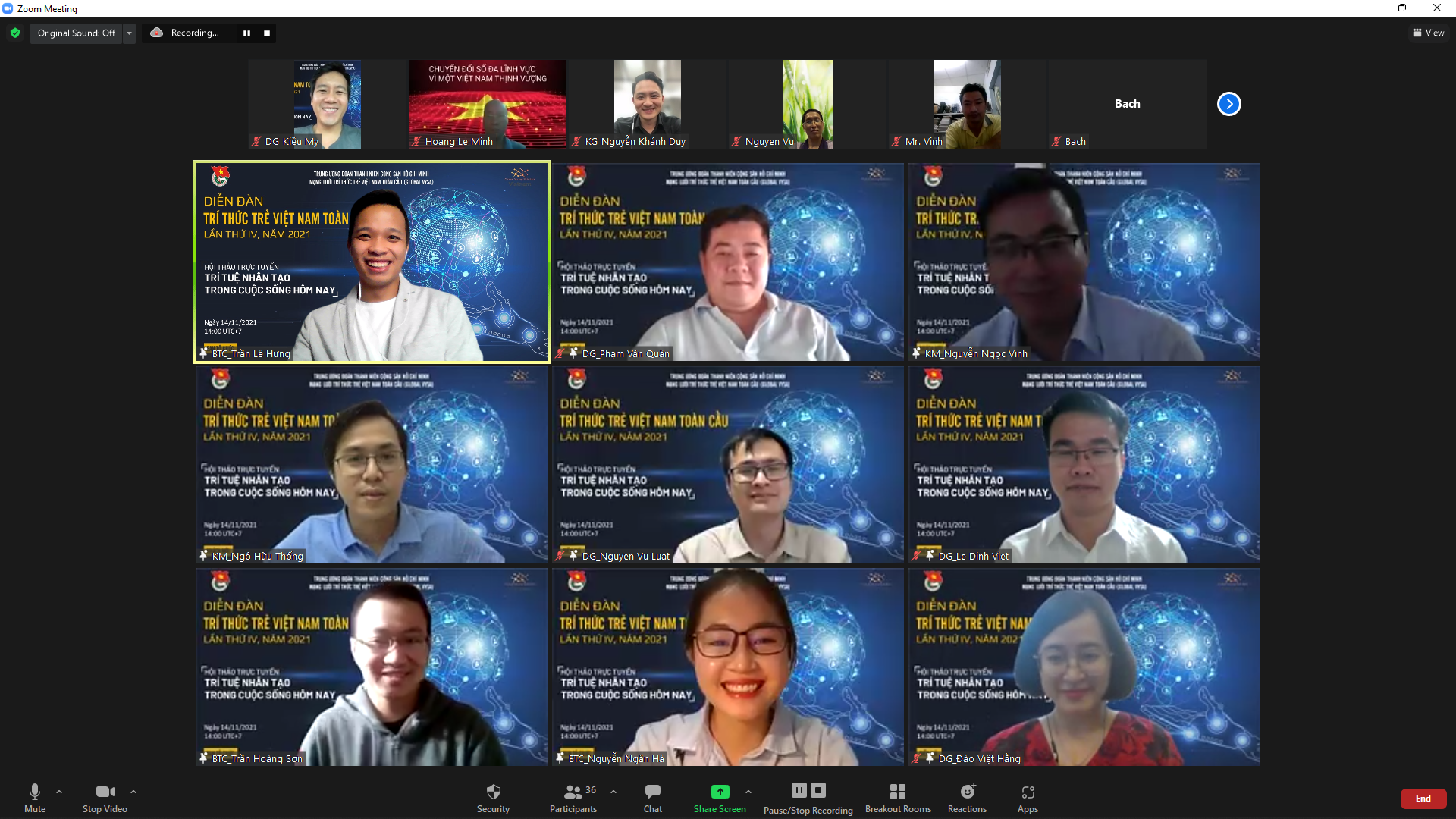 Các diễn giả và khách mời là những trí thức trẻ chuyên ngành trí tuệ nhân tạo ( AI) tham gia hội thảo trực tuyến trên nền tảng ứng dụng Zoom. Ảnh BTC |