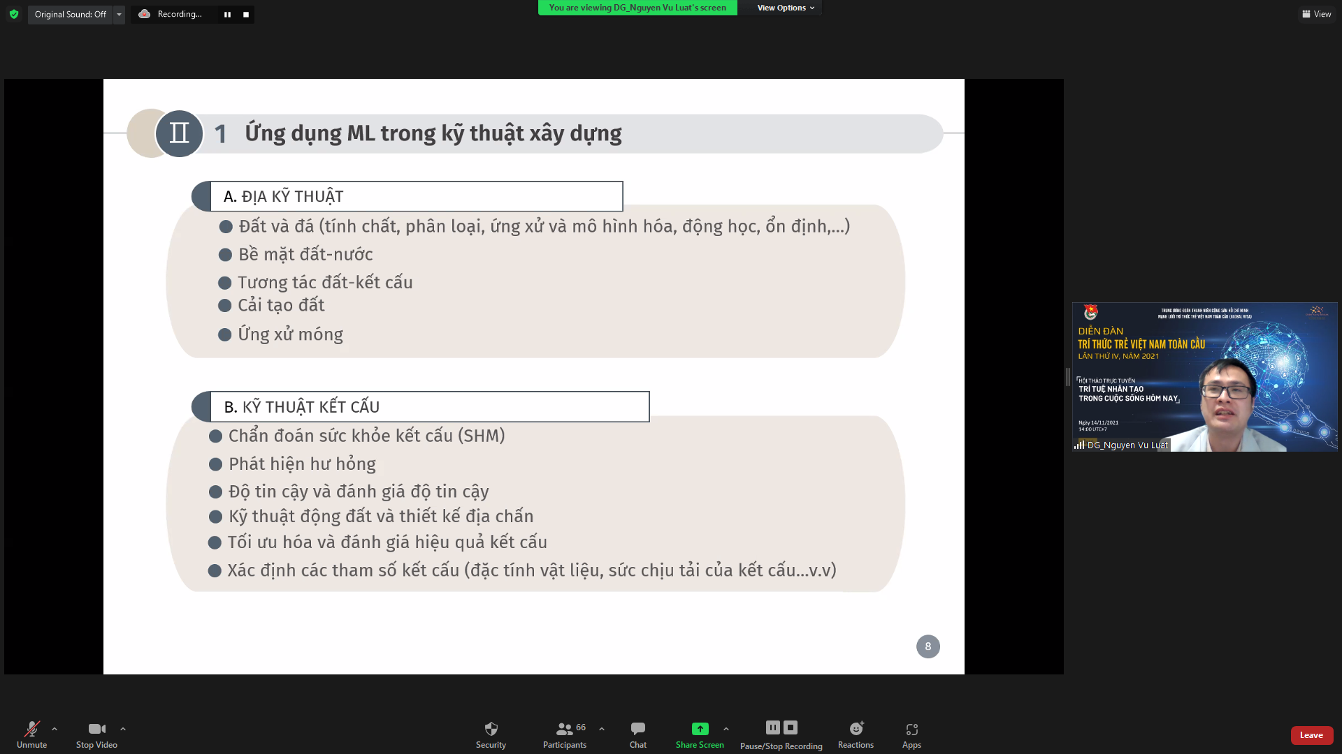Bài tham luận “Ứng dụng máy học trong một số bài toán kỹ thuật xây dựng” của TS Nguyễn Vũ Luật Nghiên cứu viên, Trung tâm nghiên cứu kiến trúc học sâu, Khoa kỹ thuật kiến trúc, Trường Đại học Sejong, Hàn Quốc. Ảnh BTC |