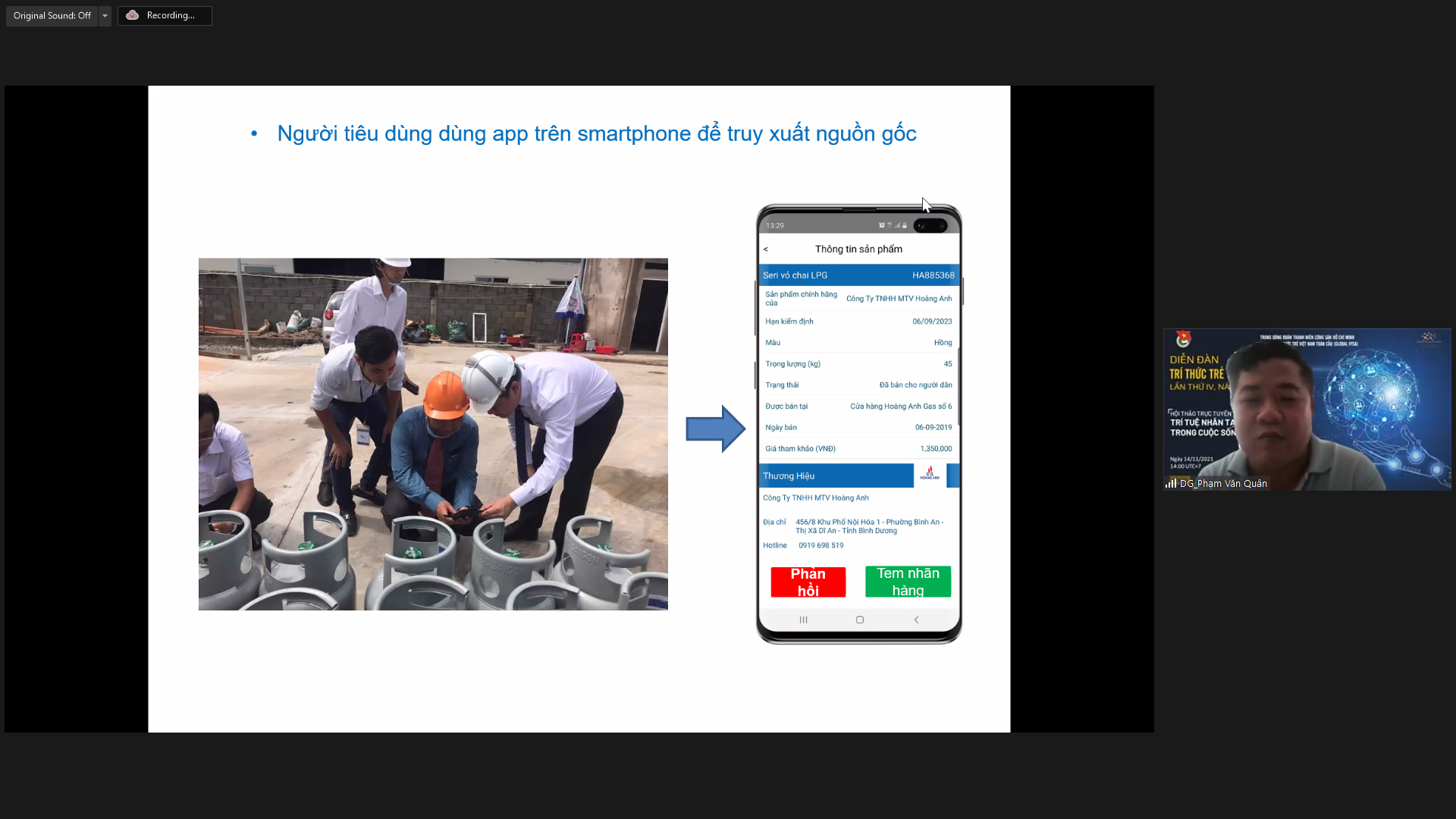 Bài tham luận “ Ứng dụng trí tuệ nhân tạo - Chuyển đổi số cho doanh nghiệp” của ông Phạm Văn Quân, CEO & Co-founder Công ty cổ phần công nghệ 4TE. Ảnh BTC |