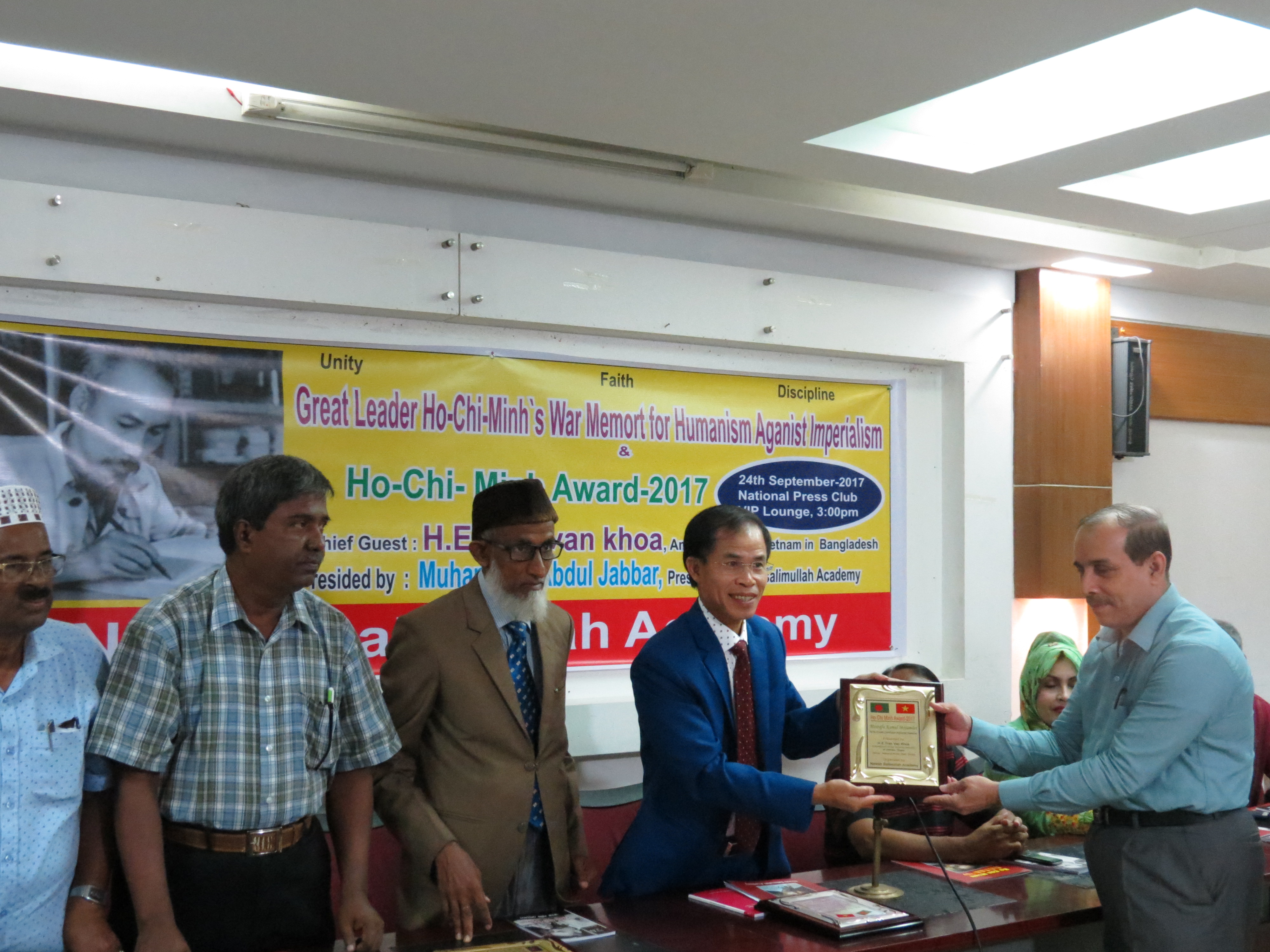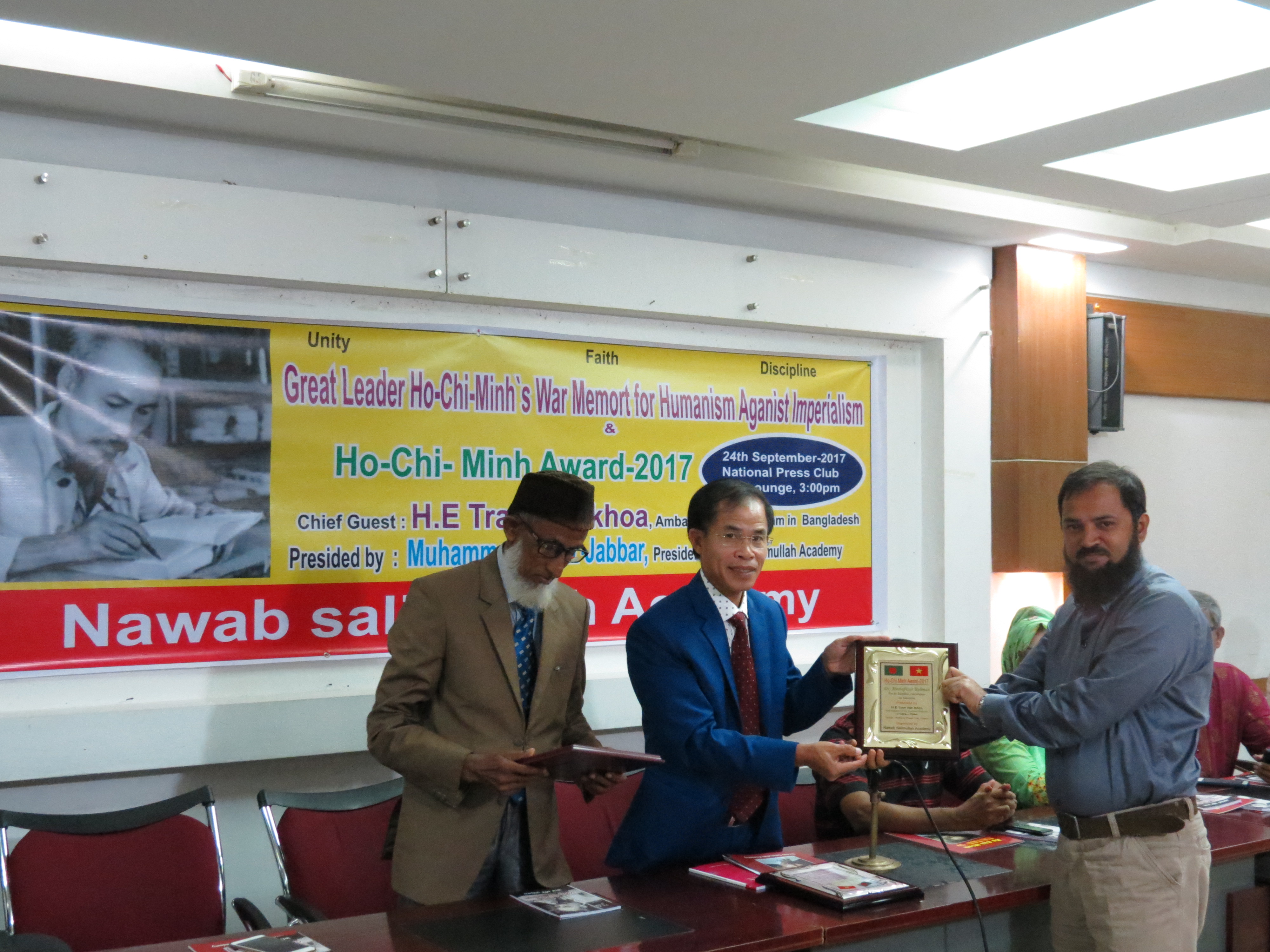 Ngày 24/9/2017, Đại sứ quán Việt Nam tại Bangladesh phối hợp với Viện Nawab Salimullah tổ chức Hội thảo về Chủ tịch Hồ Chí Minh với chủ đề: “Tư tưởng nhân văn chống chủ nghĩa đế quốc của Lãnh tụ vĩ đại Hồ Chí Minh” tại Câu lạc bộ Báo chí quốc gia, thủ đô Dhaka.