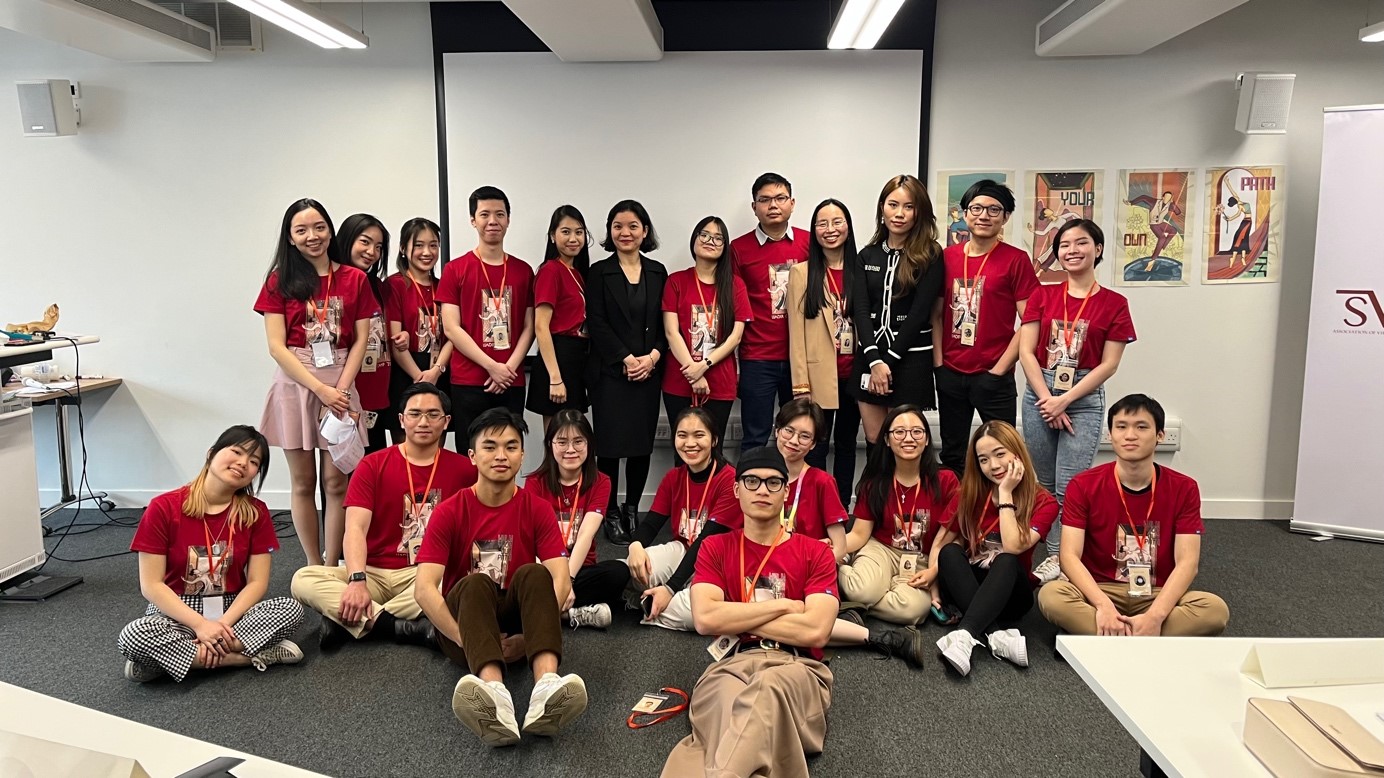 Ban Chấp hành Hội Sinh viên Việt Nam tại Anh (SVUK) chụp ảnh cùng các khách mời và diễn giả. |