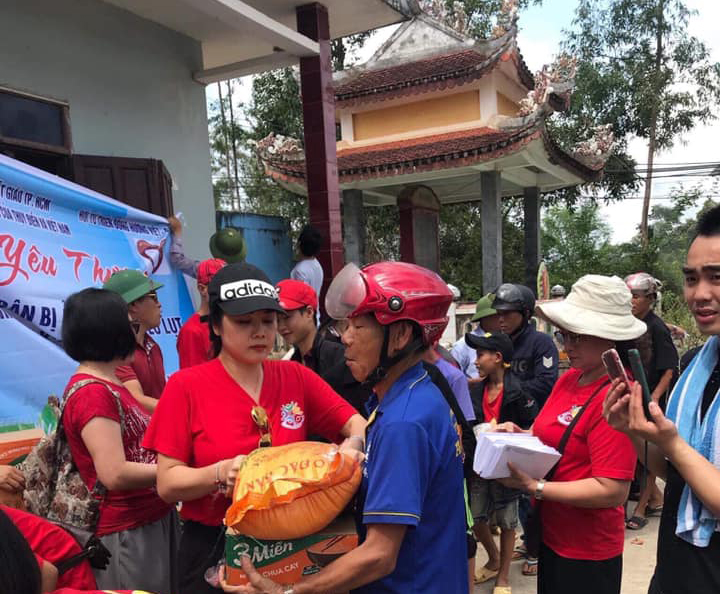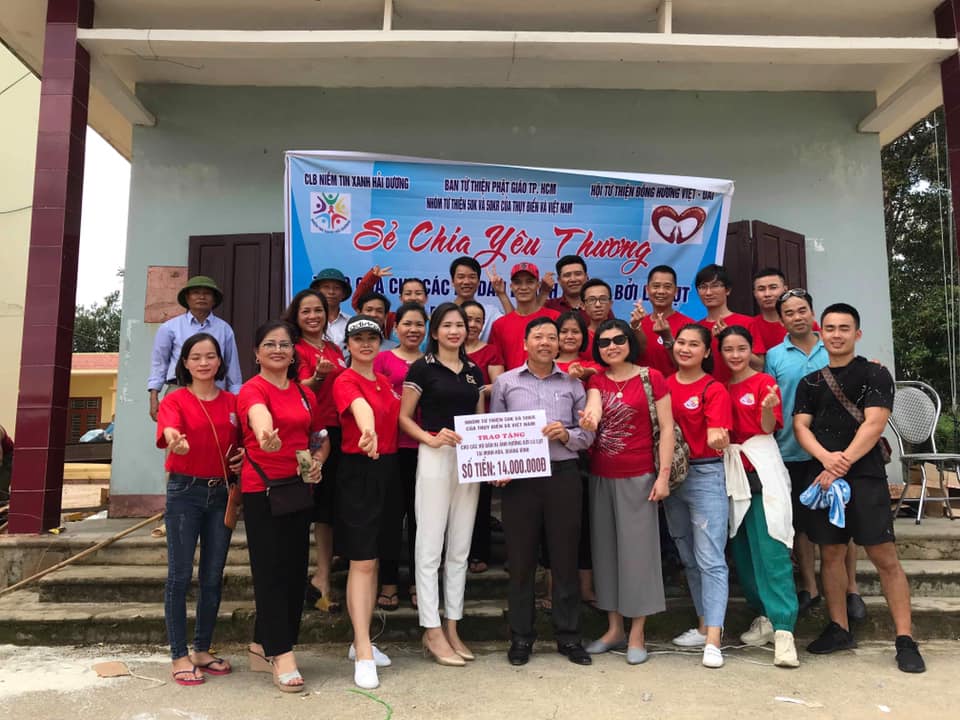 Đoàn tặng tiền mặt, mì tôm và các nhu yếu phẩm cần thiết tới 377 hộ dân với tổng số tiền 156 triệu đồng. Chị Nguyễn Thị Loan, đại diện Hội cho biết đây là tấm lòng của cộng đồng người Việt ở Đài Loan và các thành viên ở câu lạc bộ Niềm Tin Xanh thuộc tỉnh Hải Dương chia sẻ khó khăn với đồng bào bị ảnh hưởng bởi lũ lụt ở trong nước.