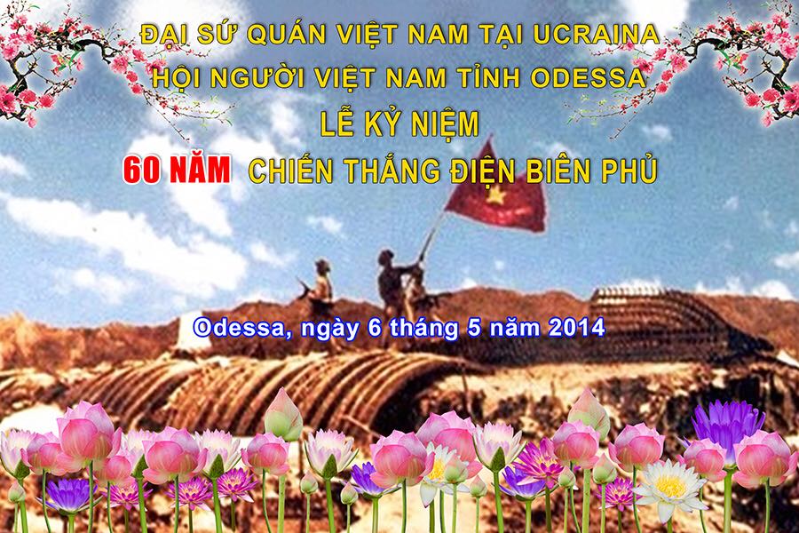 Theo đúng kế hoạch, chiều ngày 06/5/2014, tại thành phố cảng Odessa, Lễ kỷ niệm 60 năm Chiến thắng Điện Biên phủ do Đại sứ quán Việt Nam tại Ukraine chủ trì, phối hợp cùng Đảng ủy bộ phận và Hội người Việt Nam tỉnh Odessa đã được tiến hành.