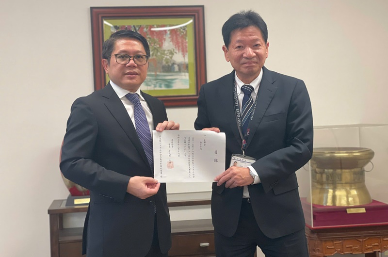 Phó Thị trưởng thành phố Izumisano (bên phải) trao khoản tiền 1 triệu yên gửi tới tỉnh Gia Lai |