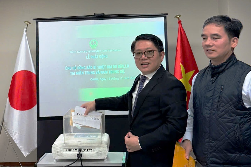 Chiều qua (16/12), tại trụ sở Tổng Lãnh sự quán Việt Nam tại Osaka (Nhật Bản), Tổng Lãnh sự quán tổ chức Lễ phát động ủng hộ đồng bào các tỉnh miền Trung và Nam Trung Bộ bị thiệt hại nặng nề do bão, lũ.