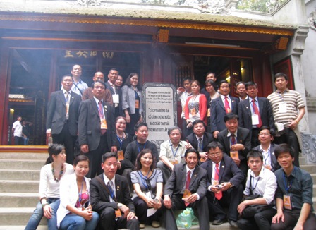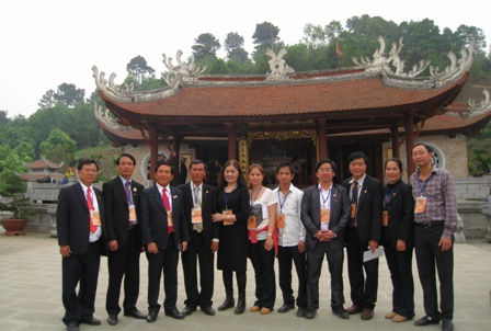 | Đoàn kiều bào chụp ảnh tại đền Lạc Long Quân |