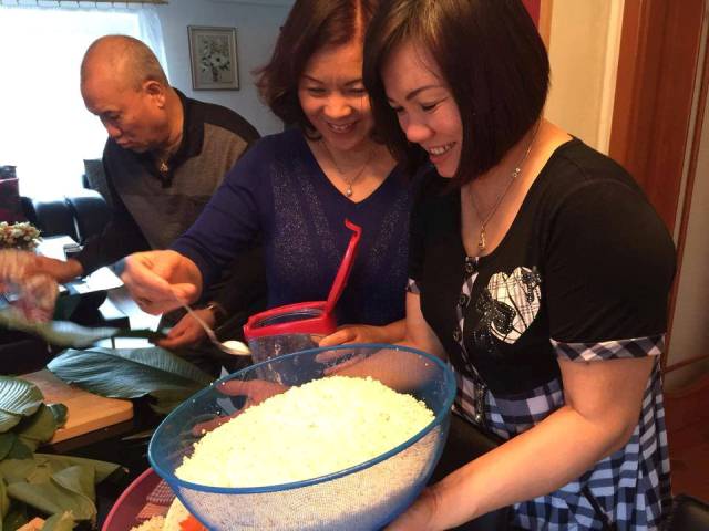 Nhóm của mấy gia đình anh chị Sơn Thủy, Mùi Thúy, Loan Quang, Hạnh Hiện đã sống ở Cộng hòa Séc mấy chục năm nay là một trong nhiều nhóm như thế. Cứ trước tết nguyên đán một tuần, mấy gia đình lại ngồi họp bàn cùng nhau xem năm nay đến lượt nhà ai và định ngày để gói sao cho phù hợp với lịch học của con mình. Phải là ngày nghỉ để các cháu tham gia công việc gói bánh cùng người lớn. Việc chọn mua lá, gạo, đỗ bây giờ cũng đơn giản hơn nhiều. Những nhà hàng bán đồ Châu Á trong các trung tâm thương mại của người Việt luôn chuẩn bị trước những sản phẩm này ngay từ đầu tháng để phục vụ nhu cầu của bà con. Đã thấy trên các kệ hàng những cành đào, những quả phật thủ và cơ man giò chả và tất nhiên không thể thiếu những đồ để thờ cúng trong lễ tất niên.