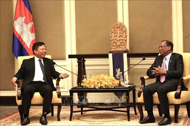 Phó Chủ tịch thứ hai Quốc hội Campuchia Vong Sauth (phải) và Đại sứ Nguyễn Huy Tăng. Ảnh: TTXVN |