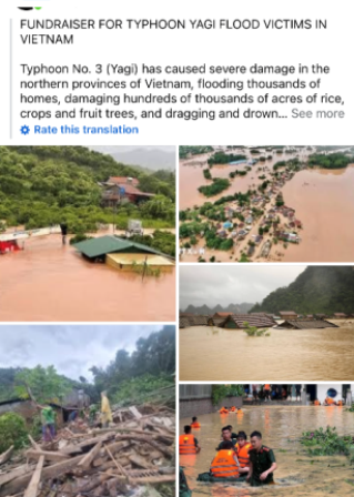 Ông Nguyễn Đình Sang chia sẻ: Năm nay, không giống mọi năm, dùng quỹ từ thiện để mình về Việt Nam chia trực tiếp người nghèo. Nhưng năm nay, do lũ lụt ở Việt Nam, bà con mất mát nhiều quá nên mình quyết định dùng số tiền này để ủng hộ. Trong này, có tiền của hai đứa con mình, của vợ và một số bạn. Được bao nhiêu, mình sẽ làm tròn rồi gửi về Việt nam.Chung tay Vượt bão Yagi là chiến dịch do tổ chức Chung tay vì Việt Nam phối hợp với các hội nhóm người Việt trên toàn nước Mỹ khởi động để gây quỹ giúp cho người dân các tỉnh, thành ở Việt Nam khắc phục hậu quả do thiên tai. Chỉ sau vài ngày phát động, số tiền quyên góp được của các tổ chức, cá nhân lên đến 30 ngàn đôla Mỹ (tương đương 760 triệu đồng).