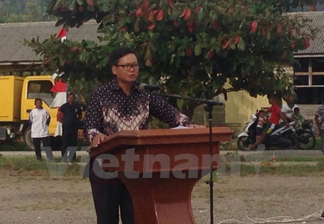 | Đại sứ Việt Nam tại Indonesia Hoàng Anh Tuấn phát biểu tại buổi lễ. (Ảnh: Vietnam+) |