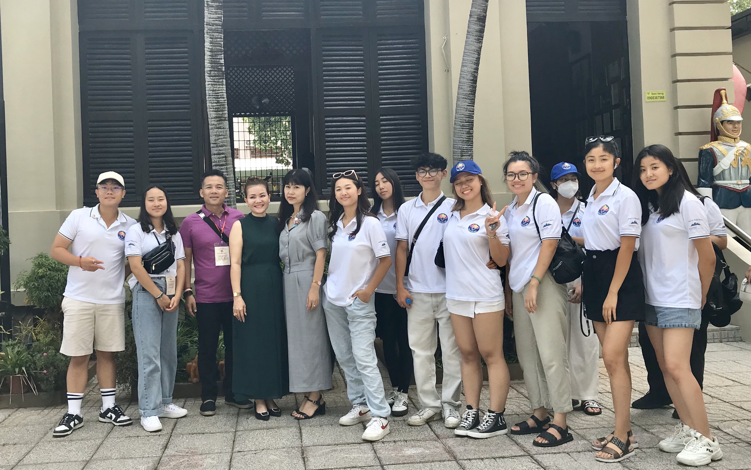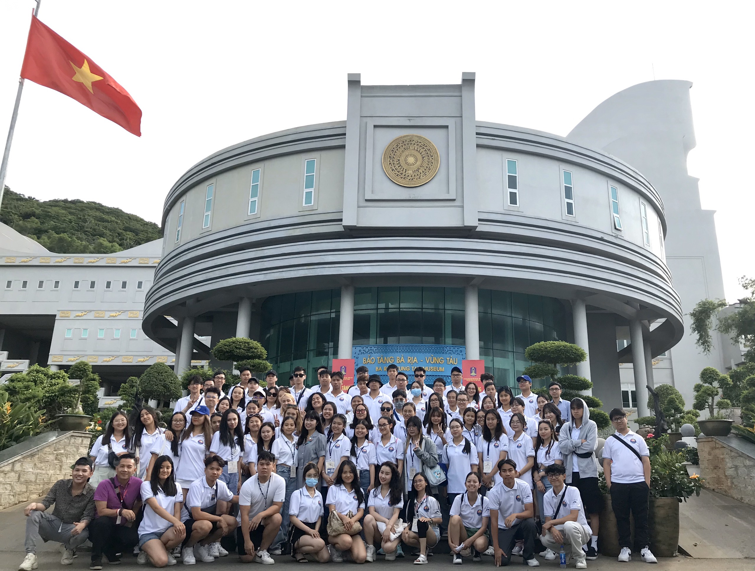 Các đại biểu thanh niên kiều bào chụp ảnh trước khuôn viên Bảo tàng tỉnh Bà Rịa - Vũng Tàu. |
