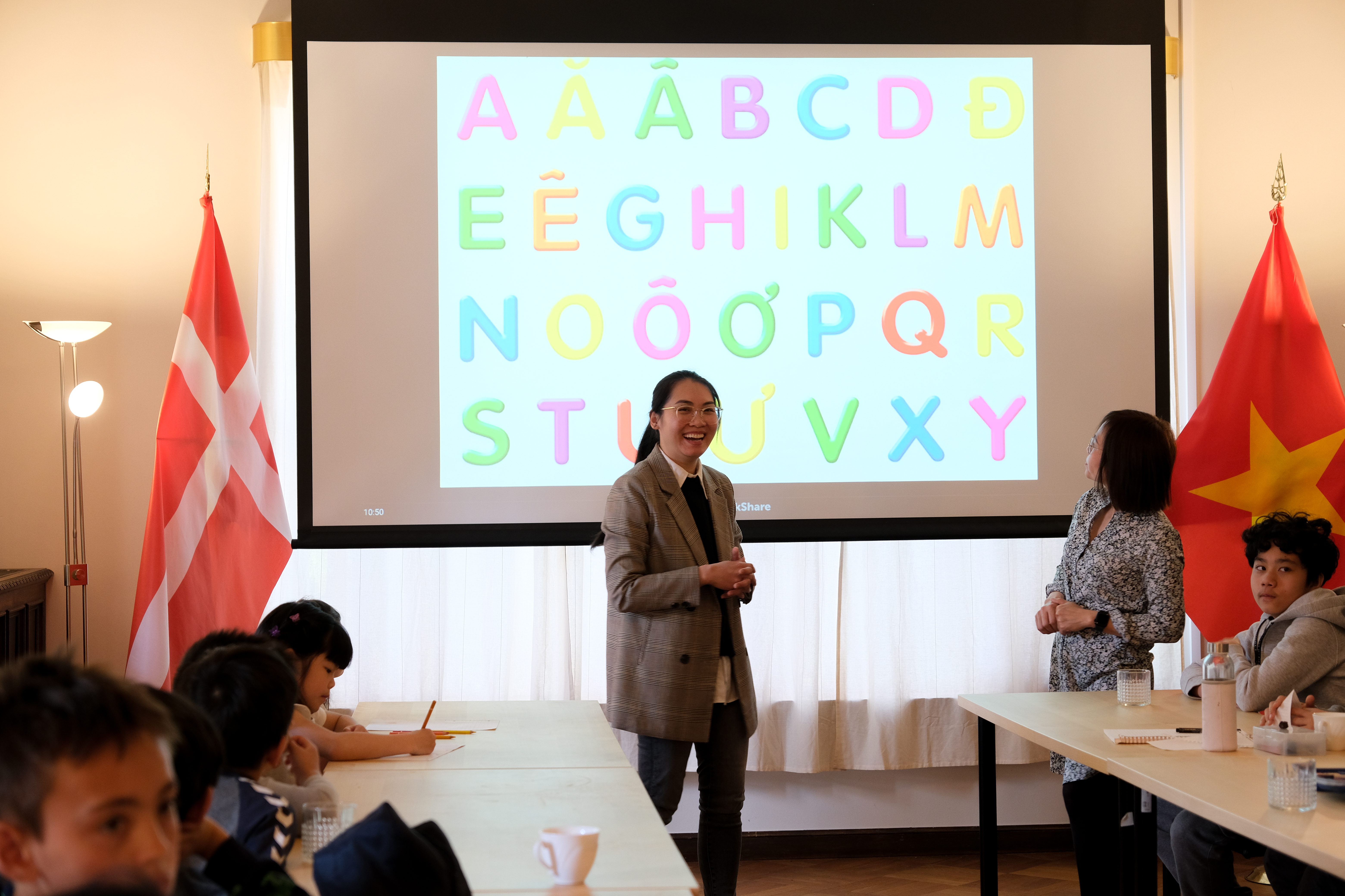 Đây là lớp học tiếng Việt đầu tiên được tổ chức tại Đại sứ quán, gồm gần 20 học sinh từ 7 đến 15 tuổi, là con cháu của người Việt Nam, được sinh ra và lớn lên tại Đan Mạch.