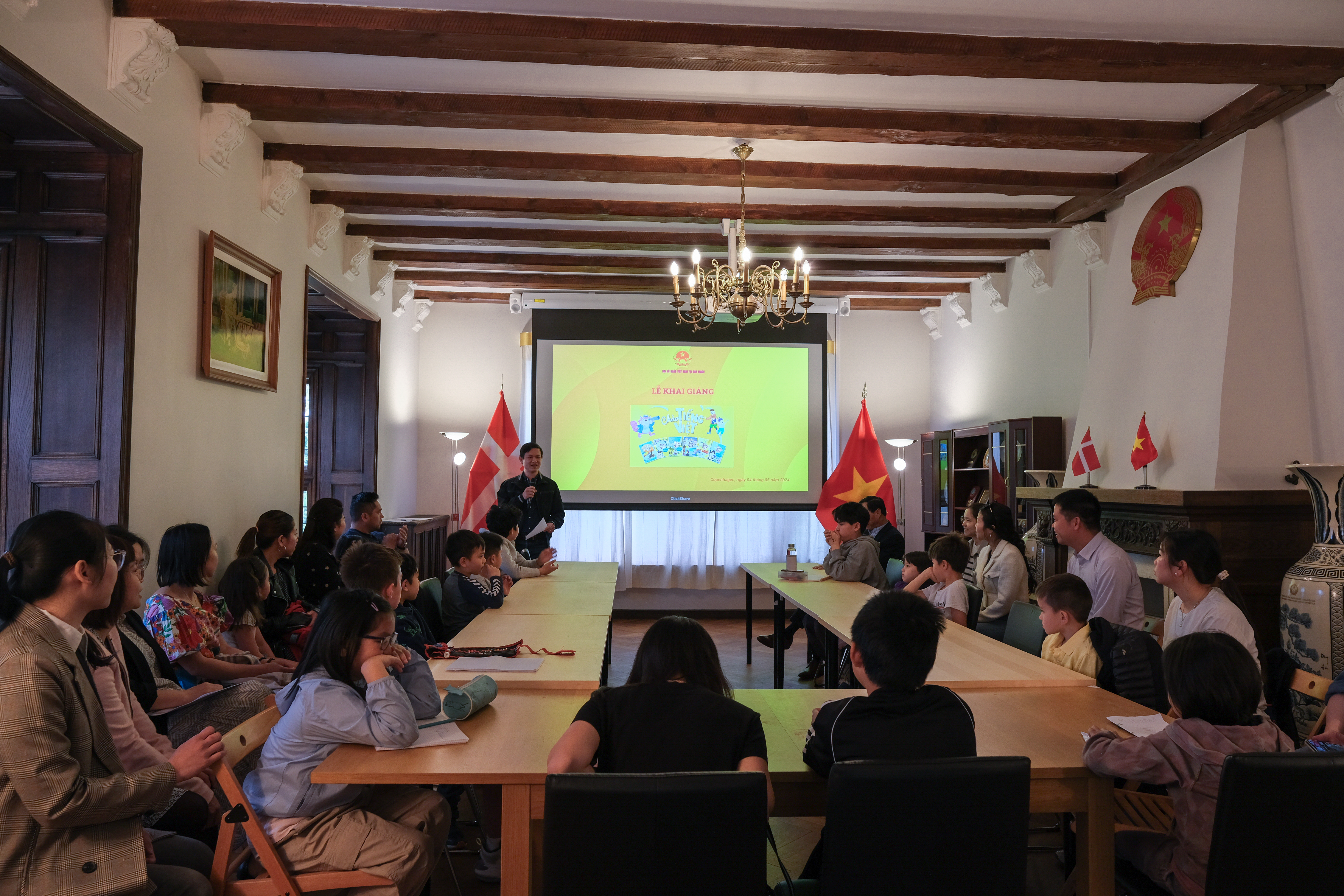 Ngày 04/05/2024, tại trụ sở Đại sứ quán Việt Nam tại Đan Mạch diễn ra lễ khai giảng lớp học tiếng Việt dành cho con em cộng đồng người Việt Nam tại Thủ đô Copenhagen.