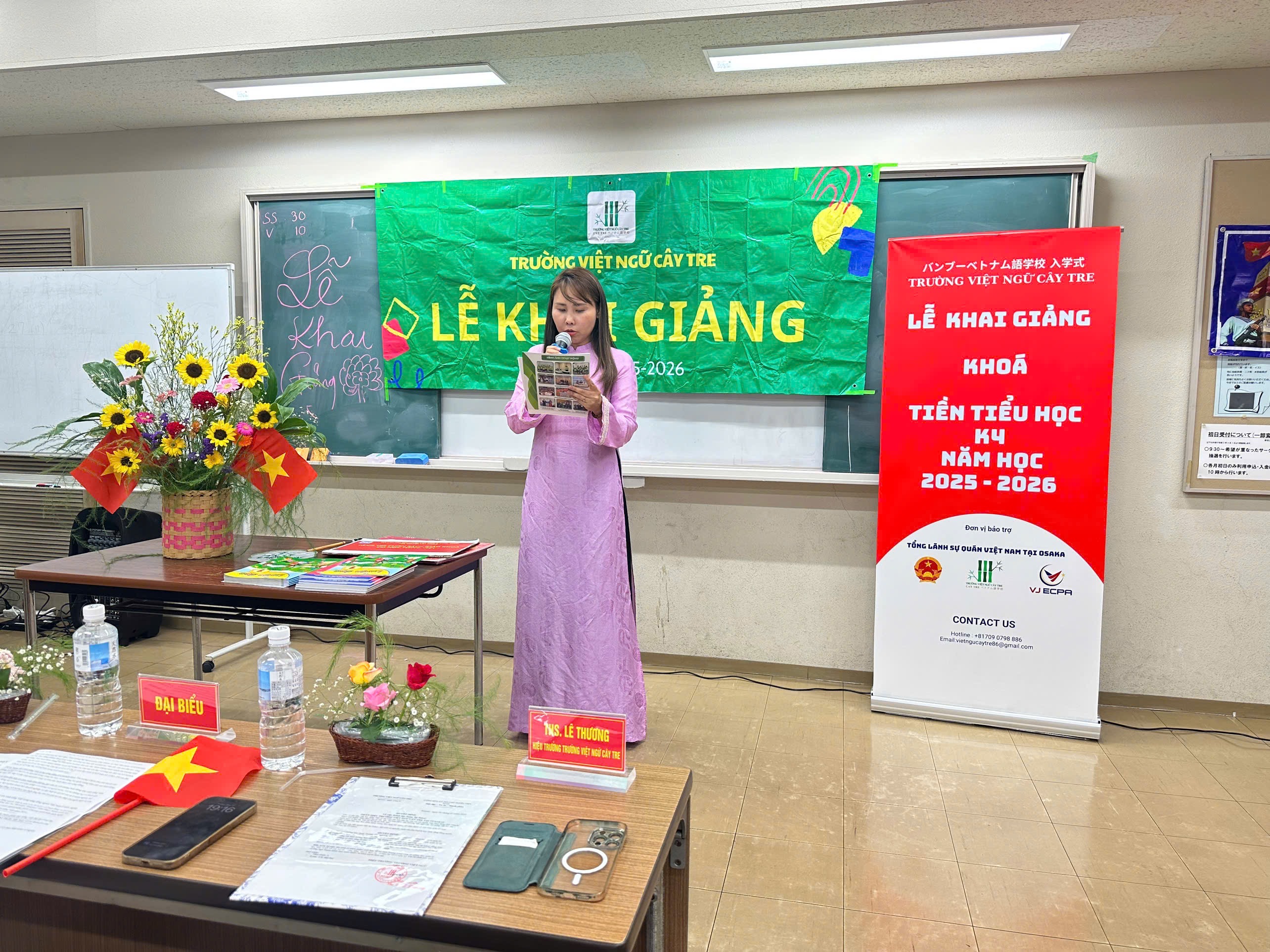 Phát biểu tại buổi lễ, bà Nguyễn Hải Yến – đại diện Tổng Lãnh sự quán Việt Nam tại Osaka, ghi nhận và đánh giá cao những nỗ lực bền bỉ của cộng đồng trong việc tạo dựng môi trường học tiếng Việt cho thế hệ trẻ, đồng thời khẳng định: “Tiếng Việt là linh hồn của dân tộc. Việc giữ gìn tiếng Việt nơi xứ người chính là giữ gìn bản sắc và sự kết nối thiêng liêng với Tổ quốc”.