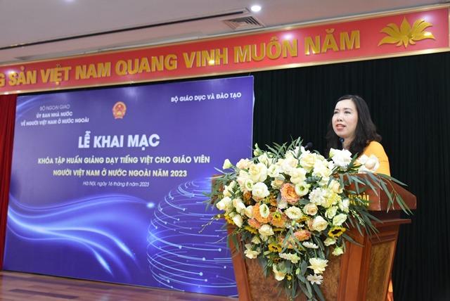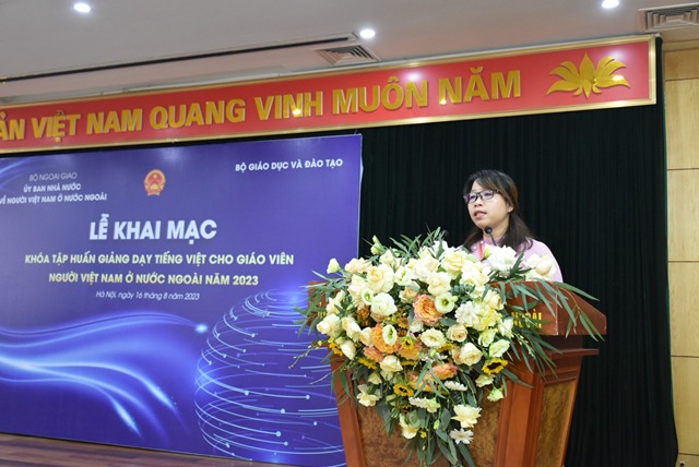 Phát biểu tại lễ khai mạc, Thứ trưởng Bộ Ngoại giao, Chủ nhiệm Ủy ban Nhà nước về Người Việt Nam ở nước ngoài Lê Thị Thu Hằng nhiệt liệt chào mừng các giáo viên tiếng Việt ở nước ngoài về tham dự tập huấn; đánh giá cao những đóng góp của các thầy giáo, cô giáo, bằng tinh thần và trách nhiệm, niềm đam mê đã làm tốt việc gìn giữ và trao truyền tiếng Việt trong cộng đồng người Việt Nam ở nước ngoài cũng như cho các thế hệ mai sau. Bà Lê Thị Thu Hằng bày tỏ hy vọng:“Mong rằng trong 2 tuần tới đây, bằng nỗ lực của các thầy cô, bằng trách nhiệm và tình cảm của các thầy cô giáo của Trường đại học khoa học xã hội nhân văn, sự giúp đỡ và hỗ trợ của ngành giáo dục, Nhà xuất bản giáo dục và các cơ quan khác… các thầy cô sẽ được trang bị thêm một số kỹ năng sư phạm cùng với ngọn lửa đam mê về nơi mình cư trú tiếp tục sự nghiệp trao truyền văn hóa và giảng dạy tiếng Việt”.