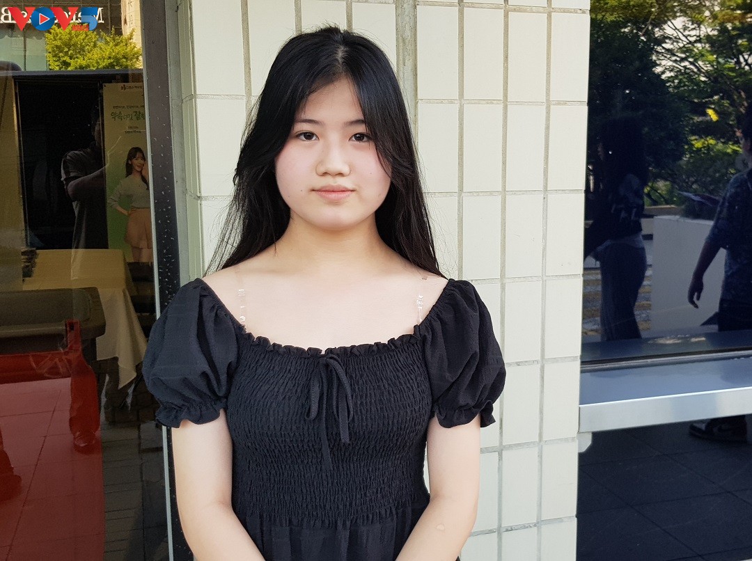 Em Bùi Thị Thương, người Việt Nam đang sinh sống ở thành phố Busan, tham gia Lễ hội. Ảnh: Ngọc Anh/VOV5 |