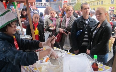 | Người dân Séc xếp hàng thưởng thức món nem rán. |