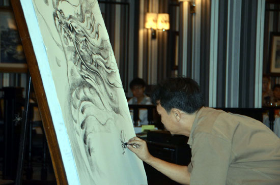 | Màn biểu diễn vẽ rồng của họa sỹ Xổm-dốt. (Ảnh: Xuân Sơn) |